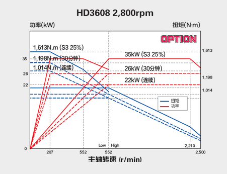 特别是HD3608提供齿轮式主轴的选项, [齿轮型扭矩 : 1,613 N.m]满足对于强力重切削功能有需求的客户要求。